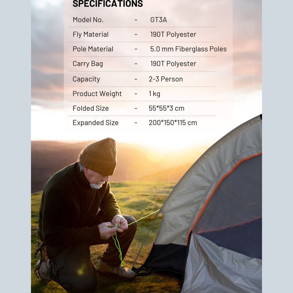 چادر مسافرتی گرین لاین مدل GT3-Plus ظرفیت ۳ نفر